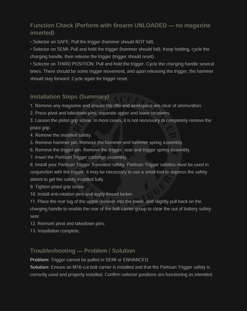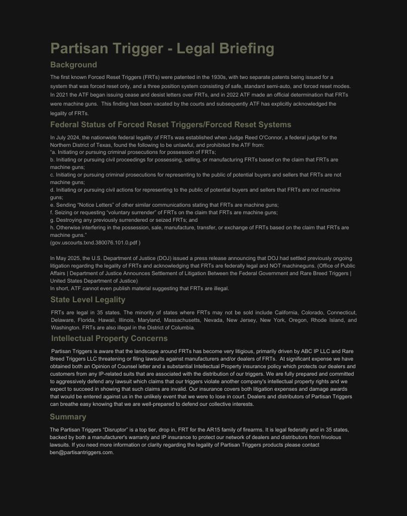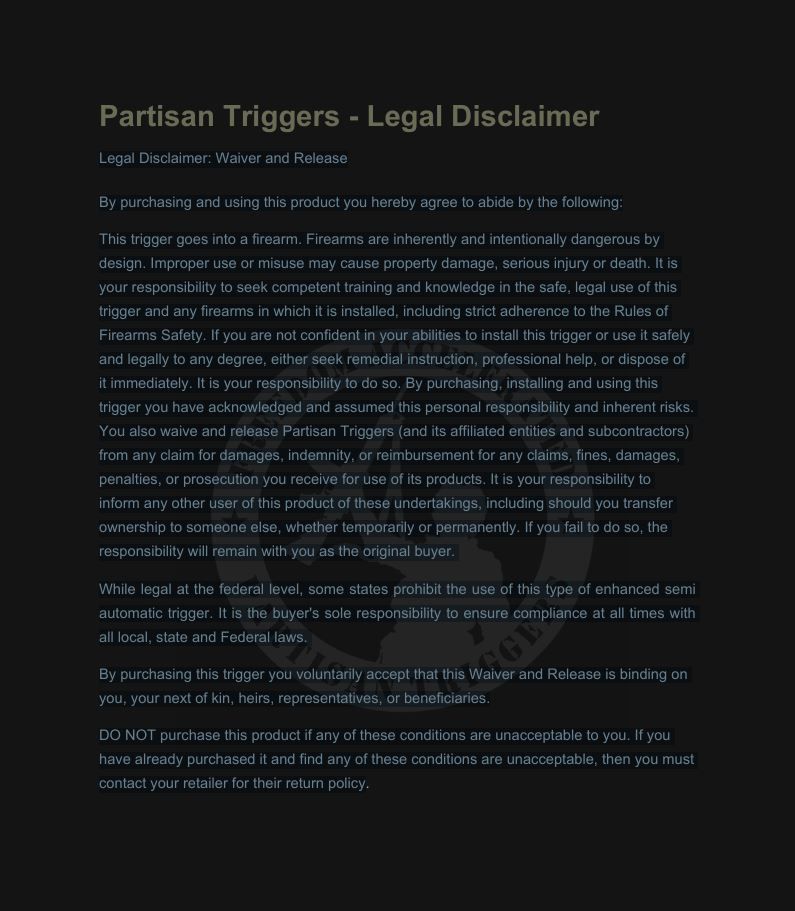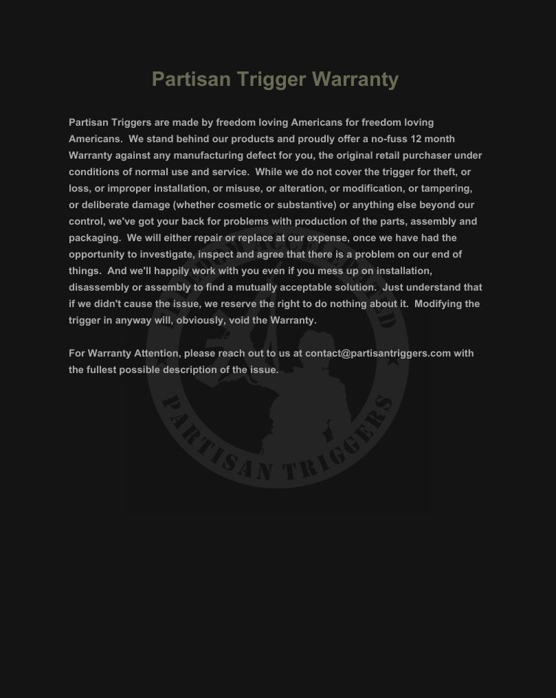 - Manufacturer: Partisan Triggers
