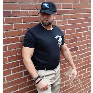 Tactical Shit Logo on front, distressed American flag with thin blue line on back.
