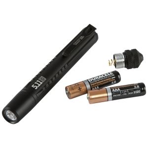 The 5.11® TMT™ PLx Penlight is designed to provide full-sized tactical lighting in a palm-sized package. Powered by two (2) AAA batteries, the TMT PLx casts a dazzling 40 meter cone of light and offers four hours of runtime on a single charge. Tough and ruggedized construction ensures lasting durability, and an integrated clip fastens securely to your shirt or pant pocket.