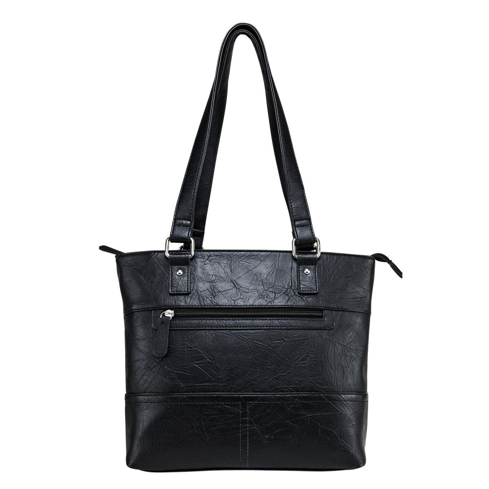 - Faux leather Tote Bag with a zippered pocket on the front and the primary CCW compartment is located on the back side of the purse with two zippers on either side for easy access to the holster.