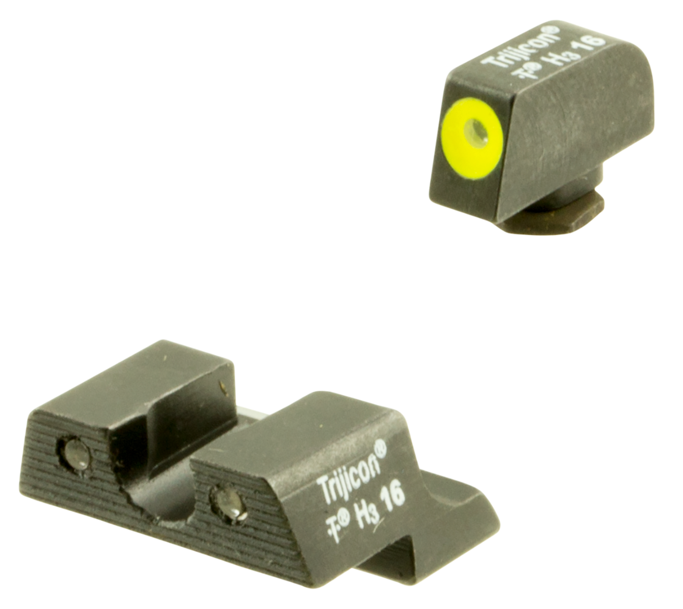 The HD Night Sights were specifically created to address the needs of tactical shooters. They are a self-luminous, three-dot night sight set that features a highly visible photoluminescent paint outline to quicken sight acquisition, along with a "U" notch rear sight that's angled and serrated to reduce glare and aid in front-sight focus. The Tritium gas lamps are contained within protective aluminum cylinders and have additional silicone rubber cushioning. Each Trijicon tritium lamp is capped with a sapphire jewel that helps evenly distribute the light and also acts as an additional layer of protection from puncture and cleaning solvents.