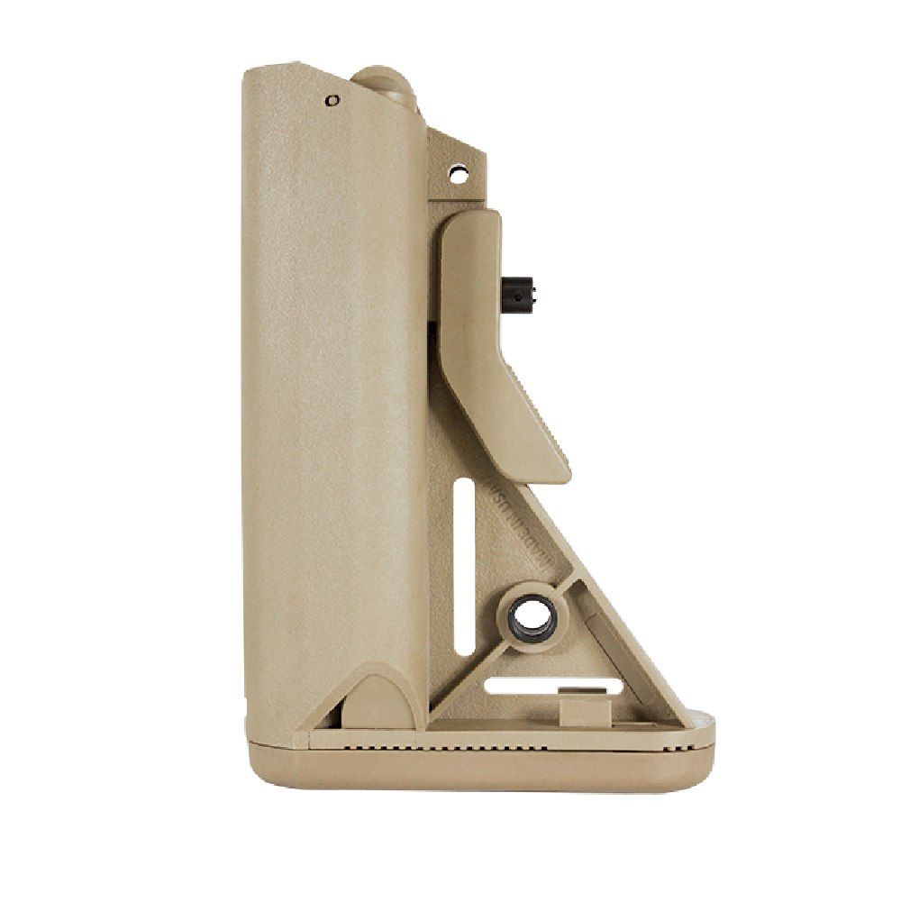 Designed to fit MILSPEC Buffer tubes. The JE SOPMOD Features a excellent cheekweld for optimum shooting positioning. Within the stocks frame are two water tight storage compartments for small items. The rubber padded buttplate provides a non-slip surface for consistent shoulder and cheek placement. JE has taken features the users demand, and Offering them a light, compact buttstock at a very attractive price point
