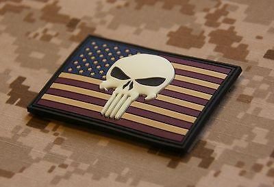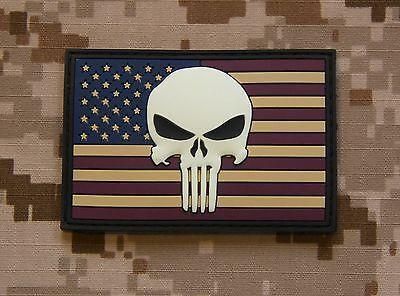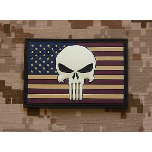 PVC US flag patch with Glow-In-The-Dark 3D skull. Measures 3" x 2" with Velcro-backing.