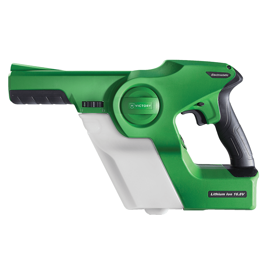 Our Professional Cordless Electrostatic Sprayer allows the user hours of spraying time without the hassle of dragging a cord. In addition, it is designed to save time and labor, spray less liquid, and cover more surfaces. Victory Sprayers’ patented technology provides an electrical charge to solutions, allowing them to wrap conductive surfaces with an effective and even coverage. Double-charged particles envelope all conductive surfaces – shadowed, vertical and underneath.