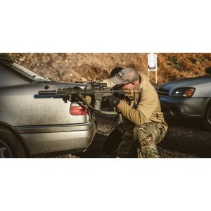 Inspired by the bearskin cloaks worn by legendary berserker warriors, the Bersherken jacket is built for the toughest of cold-weather battles. The relaxed fit men's chassis is comprised of a 3-layer waterproof/breathable outer shell with a thick sherpa-fleece inner facing. Reinforced Cordura® forearms are perfect from brush-bashing in thick scrub or low-crawls through enemy territory. Tactical features include sidearm access Gunvents, upper chest pockets accessible with plate carriers, and internal communication routing. Perfect for layering in extreme cold, but robust enough to be worn as a solo jacket, the Bersherken jacket is as ruthless as its namesake.