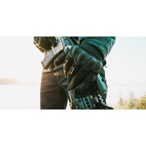 The range is littered with would be tactical gloves that have failed to live up to a weekend of training. Blown seams, shredded palms, failed fingers all tell a sad tale of handwear woe. The WARTORN™ glove was designed to overcome these points of failure while adding additional functionality. The thumb valleys are reinforced with Combative Leather™ to defeat the aggressive checkering of modern polymer handguns. Reinforced fourchettes on the trigger and middle finger prevent premature gusset failure. Silicone printing on all fingers provide increased grip on slides, while the trigger finger and thumb are touchscreen compatible. A full sized polymer knuckle provides backhand coverage while segmented finger knuckles allow for increased flexibility. The integrated loop knuckle pads allow attachment of MORALPHABET™ letters, so you can sound off without ever saying a word.