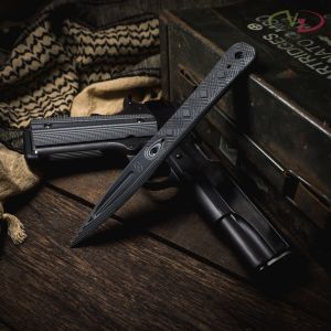 The big brother of the Discrete that gives you a little extra reach and penetration, machined from a solid piece of G10/Carbon Fiber matrix which is not only lighter than solid G10 but is non-electrically conductive and doesn’t throw a metal signature should that unexpected Garret wand come out. This is a great dagger/tool you can take and hide on you anywhere. Our new argyle checkering pattern keeps this little beauty securely in your hand. Makes a great addition to your EDC kit. Available with optional handmade leather sheath.