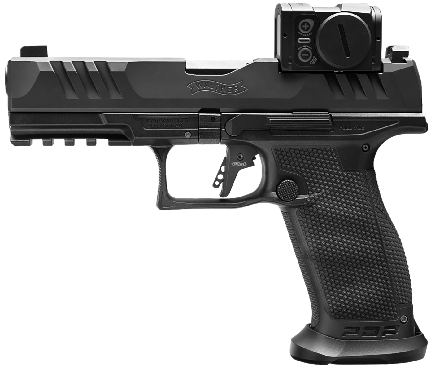 Walther PDP 9mm 18+1, 4.50" Polygonal Rifling Barrel, Optic Ready Serrated Steel Slide, Aimpoint Acro Red Dot