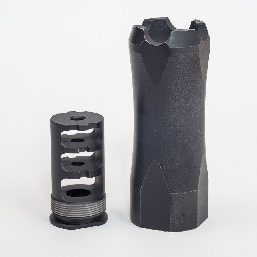 The SME is a highly effective Linear Comp/Blast Can that allows for excellent shot to shot recovery & incorporates an external shroud that reduces lateral auditory reports. The brake itself is machined from a single piece of 416 stainless and is tuned for efficiency without unnecessary weight. The three port design keeps the brake short, while allowing for an extremely high level of efficiency.