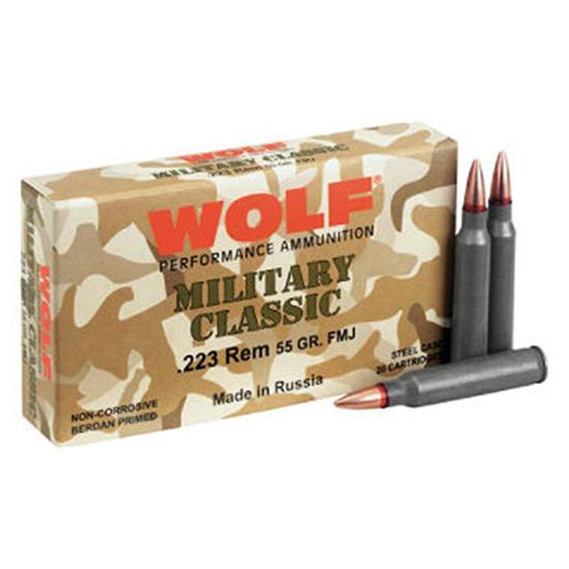 Wolf's Military Classic load features a PolyFormance coating which ensures smooth feeding and extraction. It is ideal for your recreational, competitive and tactical shooting. This 223 Remington FMJ load comes packaged 20 rounds per box, 25 boxes per case for a total of 500 rounds.