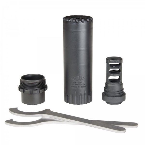 The Turbo K utilizes a tubeless design made from heat-treated 17-4 stainless steel along with a heat-treated 718 Inconel blast baffle. The combination of these materials allows the suppressor to be full auto-rated and designed for rigorous use.