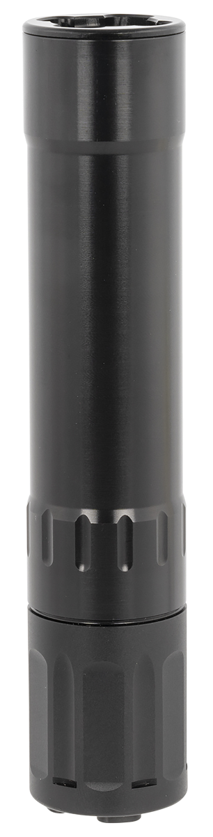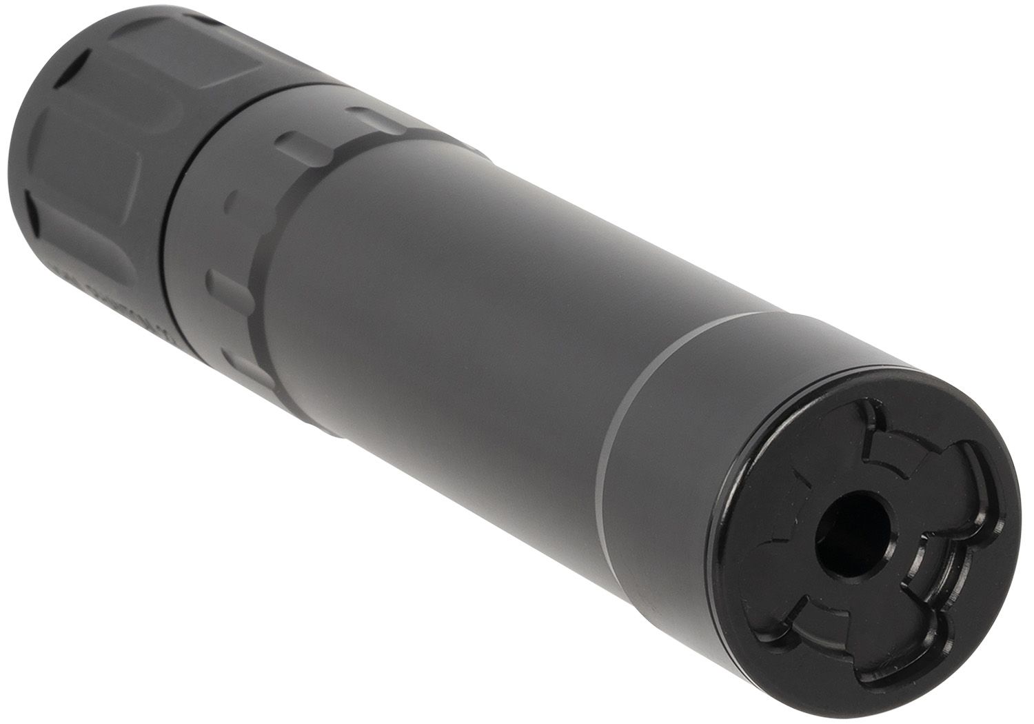 The rear of the blast chamber serves as the takedown tool for the muzzle cap, which means you will always have the disassembly tool when you need it. It features a shielded interlocking baffle stack made from heat treated 17-4 stainless steel, and each baffle has indexing tabs to ensure proper orientation for optimum performance. The outer assembly consists of 2 parts. The 7075-T6 aluminum blast chamber bears the serial number, and the 6061-T6 tube houses the baffle stack. The blast chamber features a stainless steel -28 thread insert to prolong the life of the mounting threads. A stylish aluminum muzzle cap holds everything together. Thanks to the combination of lightweight aluminum and strong stainless steel, the Phantom .22 is able to handle rounds up to 5.7x28mm while weighing a mere 4 ounces.