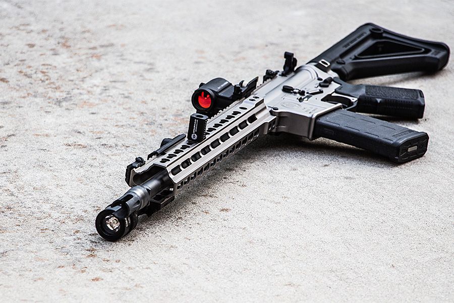 - In the rearward position on the bottom and near the front of the rail as a hand stop to ensure your hand does not touch the muzzle or suppressor.